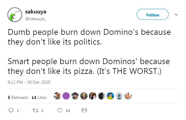 As dawn broke on November 4th, 2020, America’s white progressive class contemplated revolution, suicide, and genocide, in that order. White progressives made up only a fraction of Biden's coalition, to say nothing of the nation as a whole... but their influence on American discourse was outsized (as usual), because virtually every single person in America’s media and academy was a white progressive, as were the majority of Americans in other power centers – corporate CEOs, NGO coordinators, white-collar professionals, and so on. White progressives were disproportionately engaged in this election and hated Trump more than anyone.