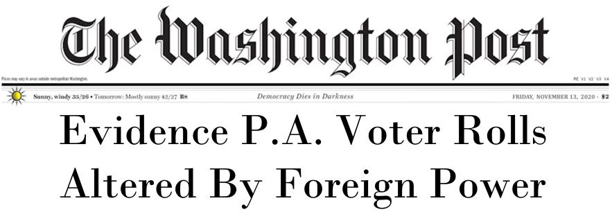 Now, to be clear, there was no actual Mrs. Dara Smithson. The Washington Post made her up as an example. This is how, in their telling, an attack against a Pennsylvania voter might work.