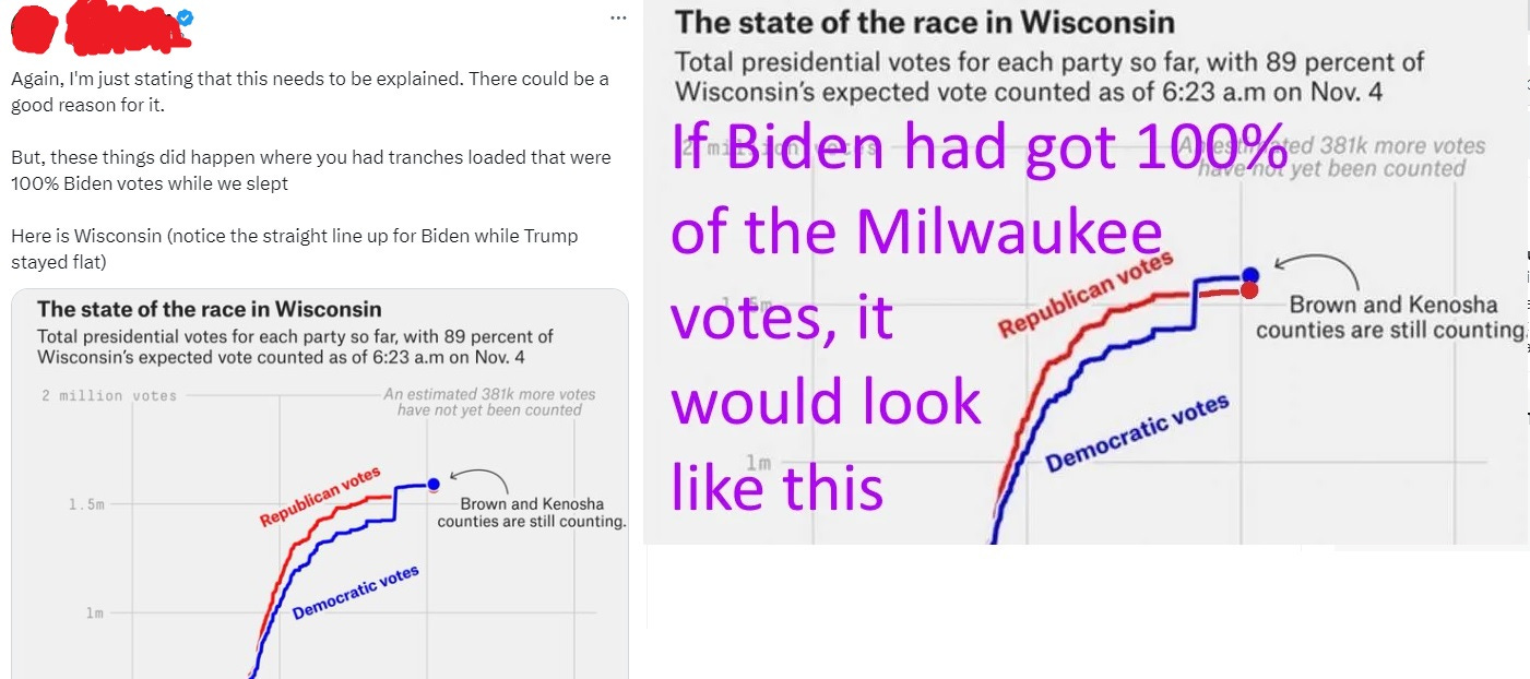 "If Trump’s performance in cities improved compared to 2016, then that probably isn’t because of fraud. It would be really weird for Milwaukee County officials to fake an election result by giving more votes to Trump than he got the last time. Even if they did do fraud there, it would be the most incompetent fraud in history!"