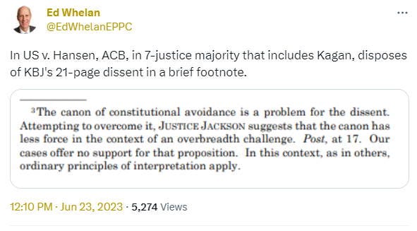 I fully expect at least one of the explosive cases this week to be settled by the Court ruling that nobody has standing. In fact, I think that’s the most likely outcome in the student loan cases.4 If that happens, should you bother reading the opinion in that case? Eh. Maybe. Probably not, though.