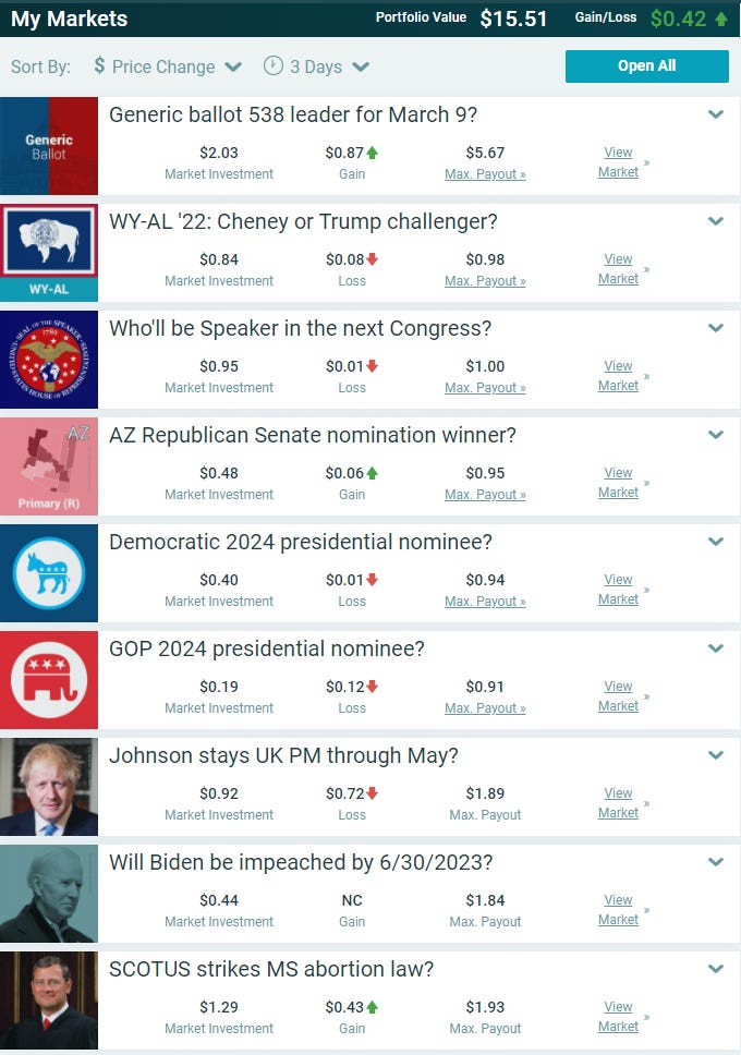 I think I finally got the hang of PredictIt. 534 days ago, I started out with $10. I immediately went into the hole. After almost two years, I finally clawed my way back up to $10.