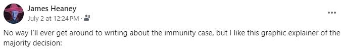 It feels like it happened forty-five years ago, but, actually the big Supreme Court ruling on presidential immunity came out earlier this month! The following day, I posted perhaps the most aged-like-milk thing I’ve ever posted: