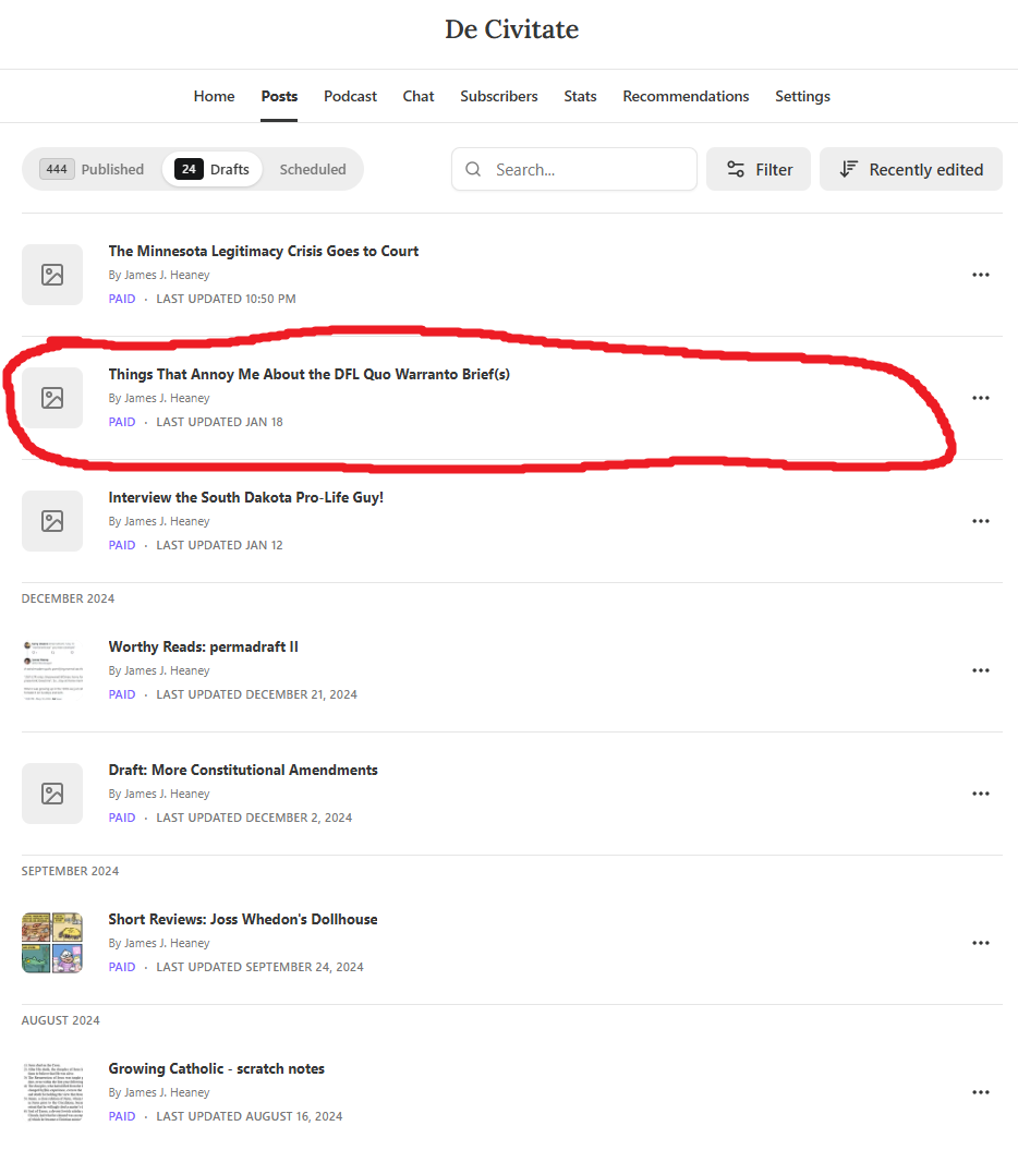 Reading between the lines of the order, however, it seems possible that SCOMN thinks Johnson does indeed have to be formally booted from the House before his vacancy formally takes effect. Demuth’s brief didn’t raise this in response to the quo warranto petitions, presumably because word counts are limited and the petitions didn’t raise the issue (because, as of last Tuesday, Gov. Walz’s legal position was still that Johnson’s seat was actually already vacant). The question is raised instead by the DFL rebuttals, which now treat Johnson’s seat as an “anticipated future vacancy,” not a current vacancy.