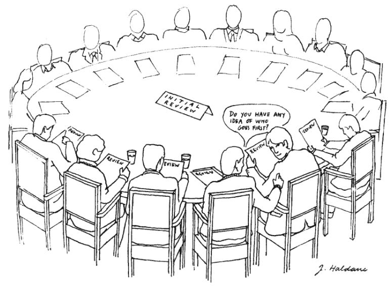 The well-intentioned point was that no staff should act as reviewers who had not themselves already been subject to the review process. Additionally the system was to be self-contained: no one’s reviewed status could result from having been reviewed out[side] the university. …If no one could conduct a review unless and until he or she had been reviewed, and that could only derive from within the system, then the process could not begin.