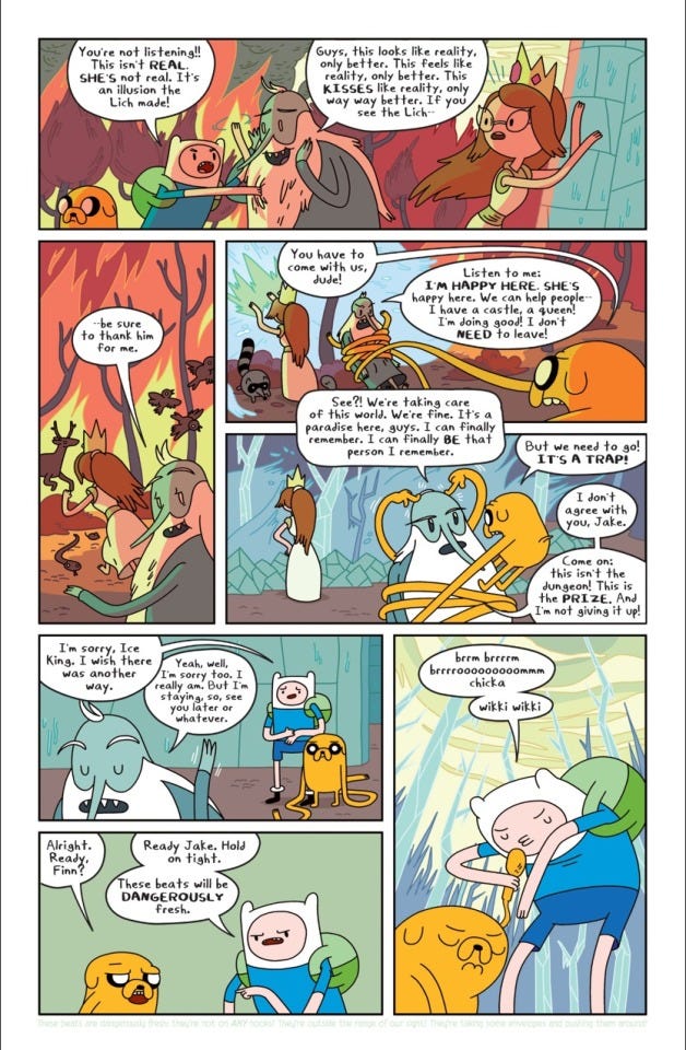 Even if someone settles into complacency with a comforting lie (or even a dubious truth!), there is always an unsettling whisper, deep down, that reminds him: “You know better. You know this isn’t right.” It’s like the Adventure Time comic where Finn, Jake, and Ice King end up in the illusion-world created by the Lich: