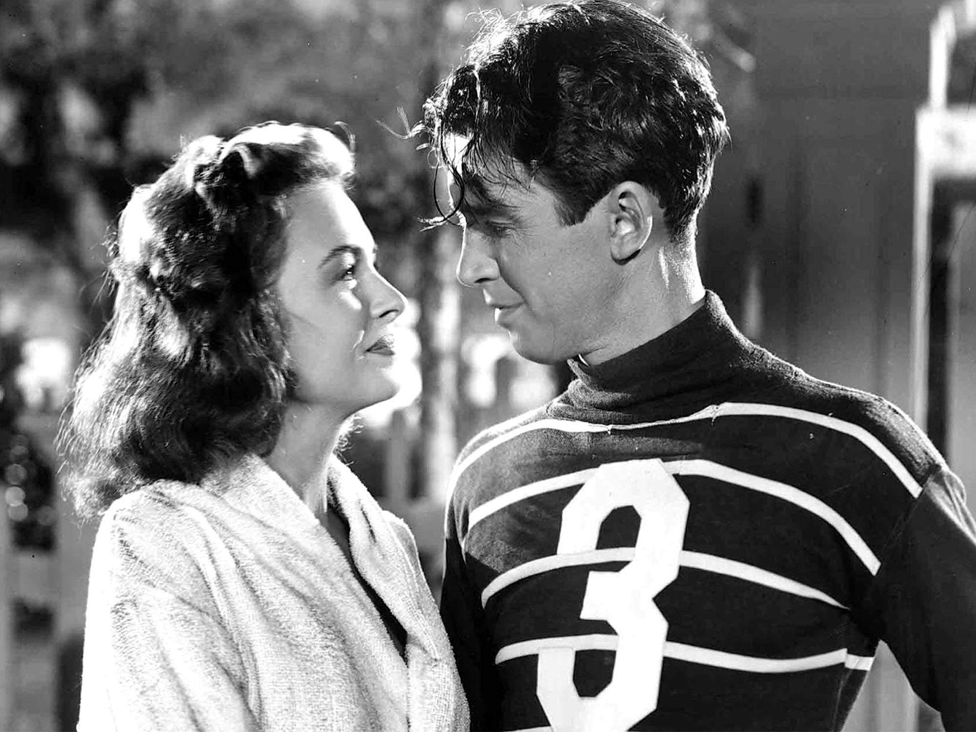 From the beginning, it is Mary who chooses George, not the other way around. In a scene from their childhood, she sits on the counter and whispers in his bad ear, “George Bailey, I’ll love you ’til the day I die,” while George, oblivious, drones on about coconuts. Reunited at the high school dance, her eyes fix on him with the loving, predatory gleam of a wifely panther. Throughout their strange, bittersweet courtship, it is she who chases him, as much as Barbara Stanwyck in The Lady Eve, Katharine Hepburn in Bringing Up Baby, or Barbra Streisand in What’s Up, Doc? George, for his part, is as outraged, as protesting, as ultimately helpless as any of his counterparts. It is a screwball chump-chase transposed into the register of drama, with George playing the part of the chump.
