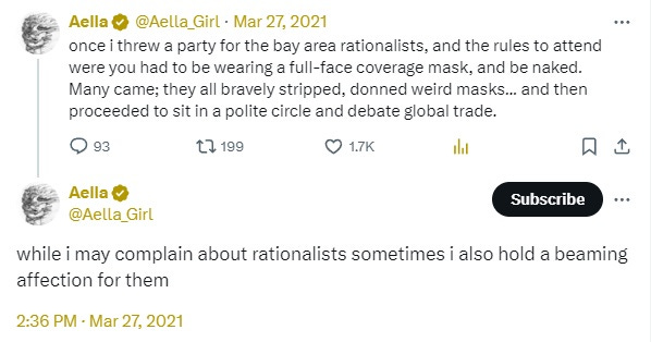 This new story, by contrast, sticks its tongue firmly in its cheek and thereby becomes a cipher. I enjoyed it for that reason. I was lurking a rationalist forum when I stumbled across “Why Don’t We Just Kill The Kid,” and the rationalists were really irritated with it. They couldn’t figure out what point it was trying to make, but they strongly suspected that—like the original “Omelas”—it was making some sally against utilitarian ethics (which are very popular in rationalist forums). Like good rationalists, they were looking for the argument: they identified the story’s presumed conclusion, extracted the missing premises from the text, and refuted the premises.